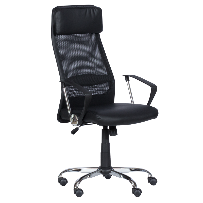 Президентския стол Carmen 6184 притежава изчистен и стилен дизайн. Изработен е от здрава и еластична текстилна мрежа, еко кожа и стабилна хромирана основа. Столът е с вграден газов амортисьор за коригиране на височината и регулируем люлеещ механизъм.