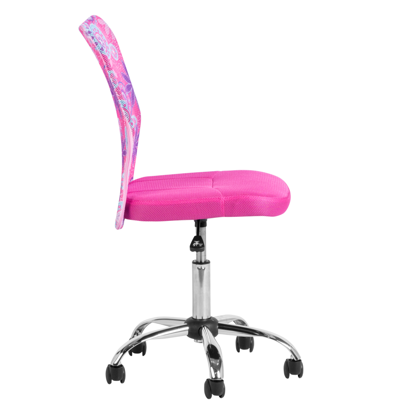 Детският стол Carmen 7022-1 LUX e прекрасен избор за стаята на вашата малко момиченце. Той е удобен и практичен модел без поглакътници, изработен от мрежа и здрава хромирана основа с колелца.