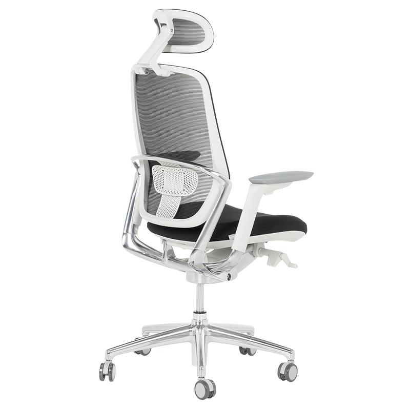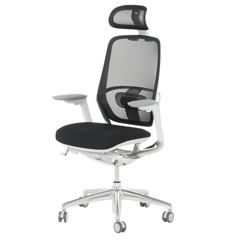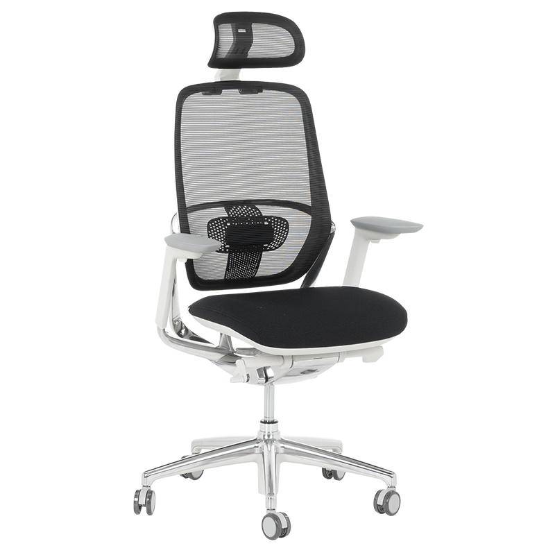 Ергономичен офис стол VAUD W ще се впише чудесно във всяко работно пространство. Моделът позволява да променяте позицията на подлакътниците с меки падове в 4 направления, да променяте цялостната височина на стола, както и да заключвате седалката и облегалката в различни позиции. Облегалката и подглавникът са изработени от дишаща мрежа за максимален комфорт, а седалката от висококачествена дамаска. .