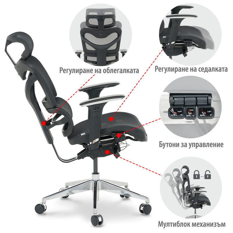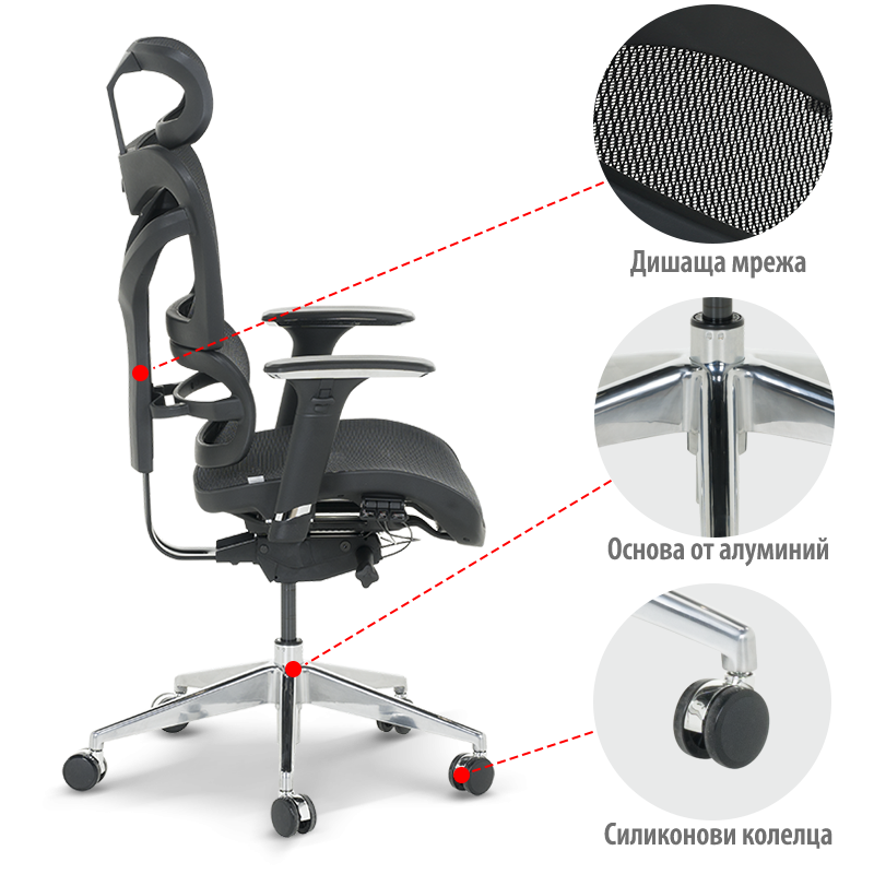 Ергономичен стол JASPER е инвестиция в здравето, продуктивността и дълготрайния комфорт. С внимание към всеки детайл, столът е проектиран да предлага персонализирано удобство и настройка, осигурявайки комфорт както при дълги часове на интензивна работа, така и в моменти на пълноценен релакс. Облегалката и седалката от висококачествена мрежа гарантират постоянен приток на въздух, което предотвратява натрупването на топлина и влага. Ергономичната S-образна форма на облегалката следва естествените анатомични извивки на гръбначния стълб, като осигурява стабилна опора там, където е най-необходимо, и помага за поддържане на правилна стойка. Една от ключовите характеристики на JASPER е неговата персонализация – регулируемите функции на облегалката, седалката, подлакътниците и подглавника позволяват на стола да бъде настроен към вашите индивидуални нужди. Стабилната алуминиева основа и силиконовите колелца правят този стол перфектен както за офиса, така и за домашна работна среда.