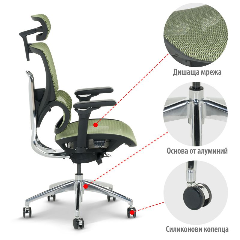 Ергономичен стол CALGARY е стилен и удобен избор за вашия дом или офис, като съчетава модерен дизайн с изключителен комфорт и практичност. Оборудван е с разнообразни функции за регулиране: 3D подглавник, 5D подлакътници, лумбална опора и облегалка и седалка от дишаща мрежа с ергономична форма. Стабилната алуминиева основа и силиконовите колелца правят този стол перфектен за всеки, който цени както удобството, така и ефективността. Още подробности може да видите в таб/поле "Техническа информация"