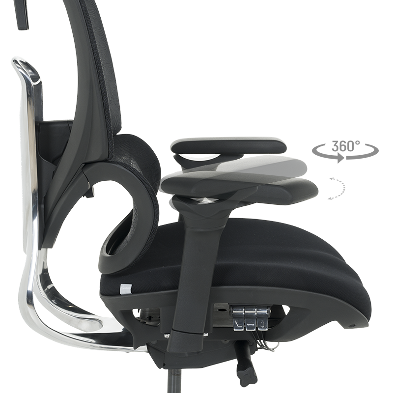 Ергономичен стол GANDER е елегантен избор за дома или офиса, комбинирайки изключителен комфорт с практичност и стил. Притежава множество регулируеми функции, които се адаптират към всяко ваше движение: 3D подглавник, 4D подлакътници, лумбална опора, облегалка от дишаща мрежа и ергономична седалка с мека дамаска. Със стабилна алуминиева основа и силиконови колелца този стол е идеалният избор за тези, които в еднаква степен ценят удобството и функционалността по време на работа.