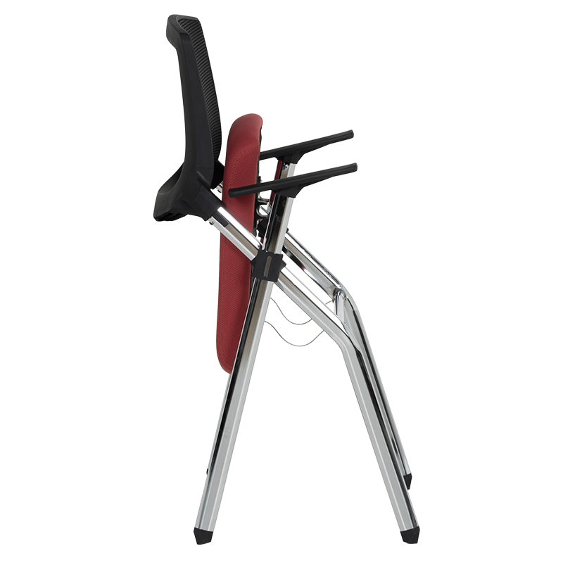 Посетителски стол Carmen 1704 съчетава удобство и стилна визия. За изработката му са подбрани висококачествени материали - облегалката е от дишаща мрежа, а широката и мека седалка е покрита със здрава и износоустойчива дамаска. Столът разполага с комфортни подлакътници, осигуряващи почивка за ръцете. Моделът е сгъваем, което гарантира лесно съхранение.
