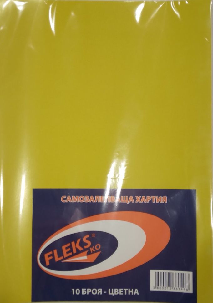 Самозалепваща хартия А4, опаковка 10, ярко жълто P-108