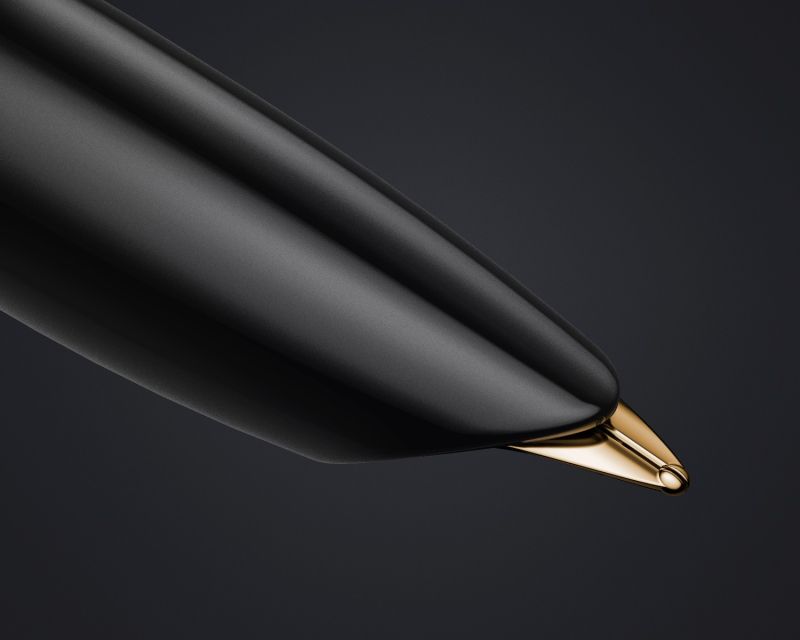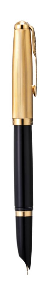 Писалка PARKER 51, 18k златен писец Гланцирано тяло от изящна акрилна смола Позлатена винтова капачка с инкрустации Позлатени декоративни детайли Черно мастило, M В безплатна подаръчна кутия