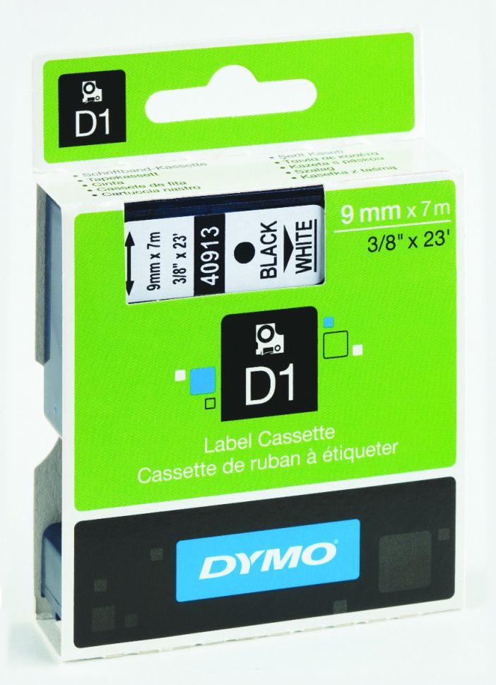 Етикети Dymo D1 Standard, 9mmх7m,чер текст/бял фон