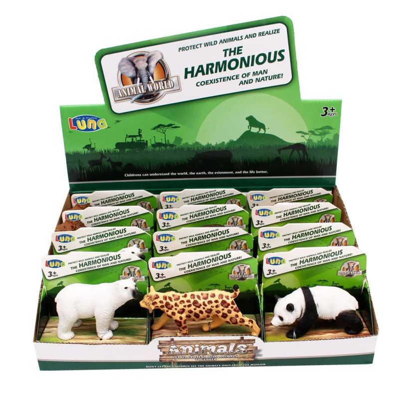 Wild Animals Luna Toys с пластмасови миниатюри на животни,децата създават свои собствени истории,ще опознават още по-добре животните,развиват творческото си въображение по най-лесния и забавен начин. Марка: Luna Toys Съдържа пластмасови миниатюри на различни диви животни. Подходящо за деца на визраст 3+ години