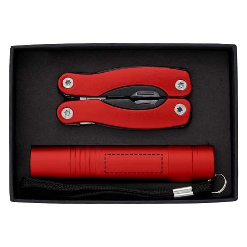 Комплект джобно ножче с 10 функции и фенерче, червен