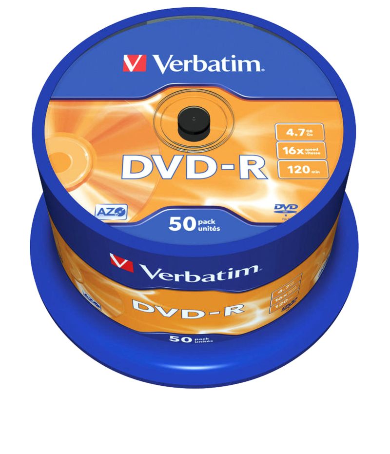 DVD-R Verbatim 4.7GB 16x, опаковка 50 броя на шпиндел