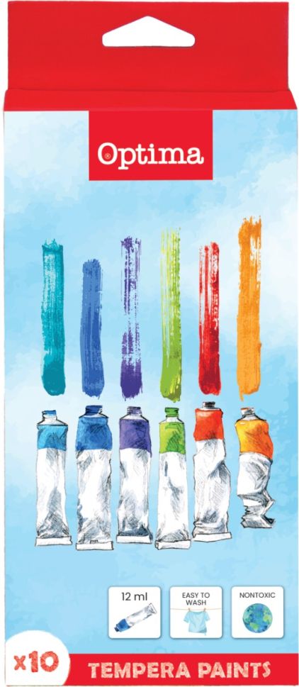 Темперни боички Optima, 10 цвята x 12 ml