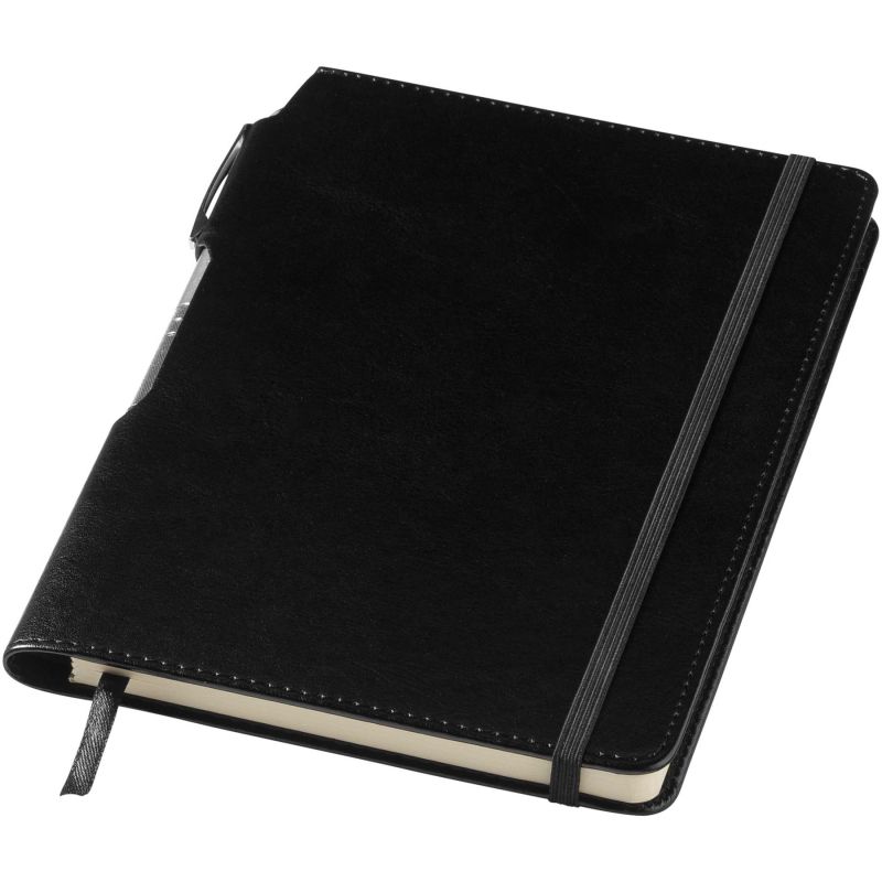 * размери 15.4 x 21 cm* с ластик и лента за отбелязване * твърда PU корица* 80 листа, линирани, тониран офсет* офсет 70 g/m2* пластмасова сребриста химикалка