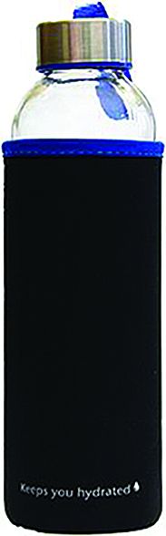 Стъклена бутилка за вода Stream с калъф, черен/син
