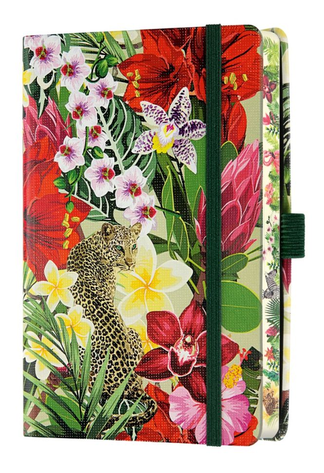 Този бележник показва процъфтяваща природа, създаваща магия и очарователна атмосфера. Ръбовете са украсени с дигитален печат на цветя. Твърда корица и заоблени ъгли, с разтегателен джоб на вътрешната задна корица, за да съхранявате вашите билети за пътуване, свободни листове и много други ценни спомени. Удобната еластична лента позволява идеалното затваряне на вашия дневник, а еластичната примка за писалка е подходяща за различни размери химикалки.