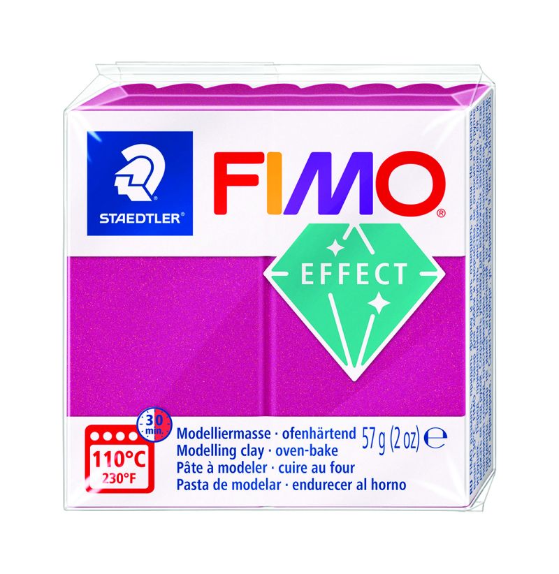 Гладка и мека глина за специални приложения и техники Ярки цветове Лесно се смесва с FIMO soft, FIMO professional и FIMO leather-effect Стандартен блок, разделен на 8 части за по-лесно порциониране 57 g, размери 55 x 55 x 15 mm Презапечатваща се опаковка, лесна за отваряне и съхранение Могат де се смесват един с друг за невероятни творения и постигане на зашеметяващи ефекти Изпича се при 110°С за 30 мин. Универсална за изработка на бижута, аксесоари и предмети за декорация Гамата FIMO ефект се състои от общо 36 цвята, разделени на осем различни ефекта: неонов, нощно сияние, полупрозрачен, блясък, металически, каменен, галактиктически и ботанически Произведена в Германия