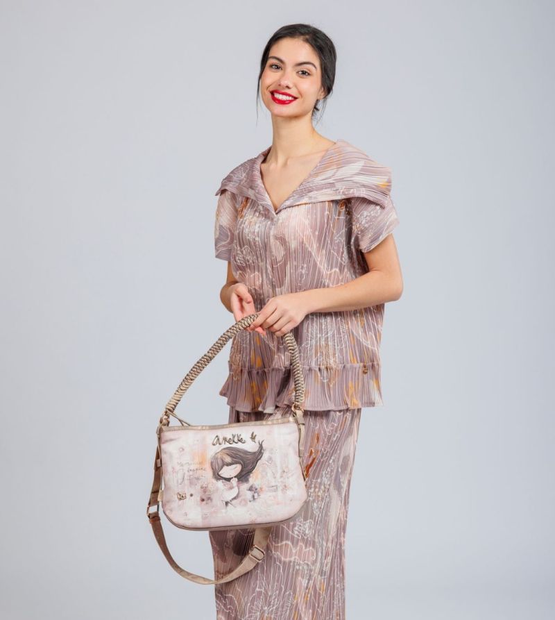 Вид: Висококачествена еко кожа Джобове: 1 основен с цип, 1 заден с цип, вътрешни: за мобилен телефон, ключове и джоб с цип Дръжки: 1 дръжка имитираща плетка и 1 дълга регулируема Размери: 30 x 25 x 10 cm