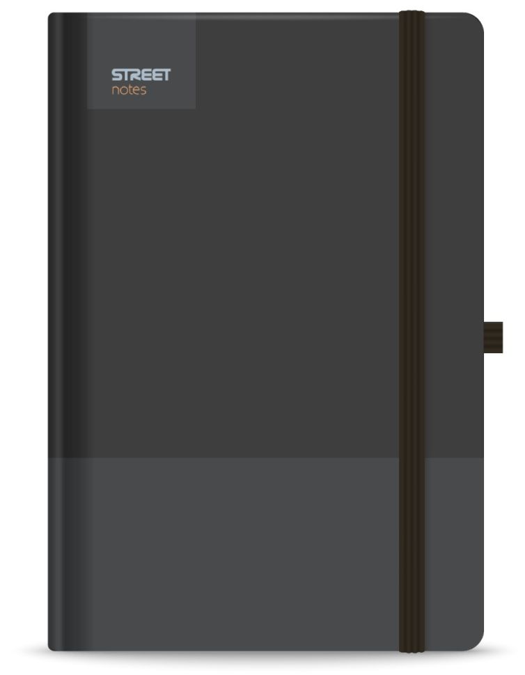 Бележник с ластик B5 Street, твърда корица, 96 листа, BLACK