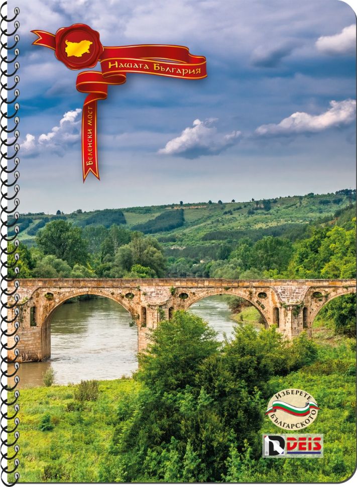 Тетрадка Deis A4, 80л, малки квадратчета, спирала,нашата България 2024