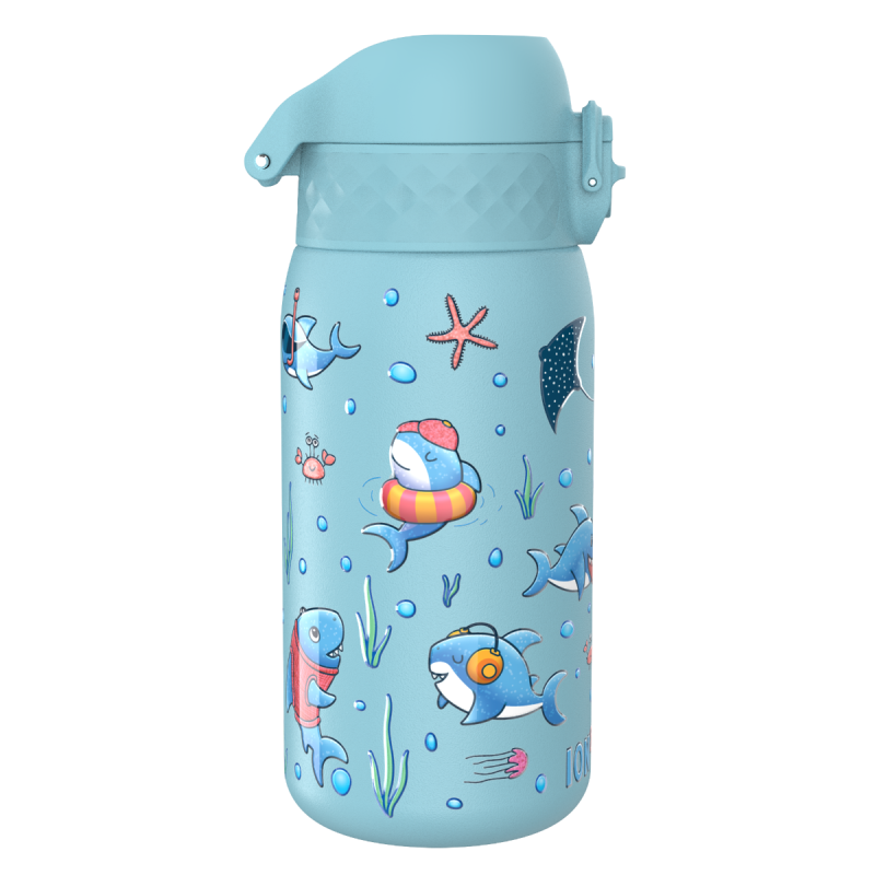 Бутилка за вода Ion8 Print, метална, 400ml, Sharks