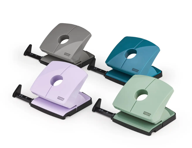 Висококачествен, метален с пластмасов капак в модерни цветове. С ограничител и индикатор за размера на хартията Неплъзгаща се основа, която може да се отвори наполовина заизчистване на отпадъка