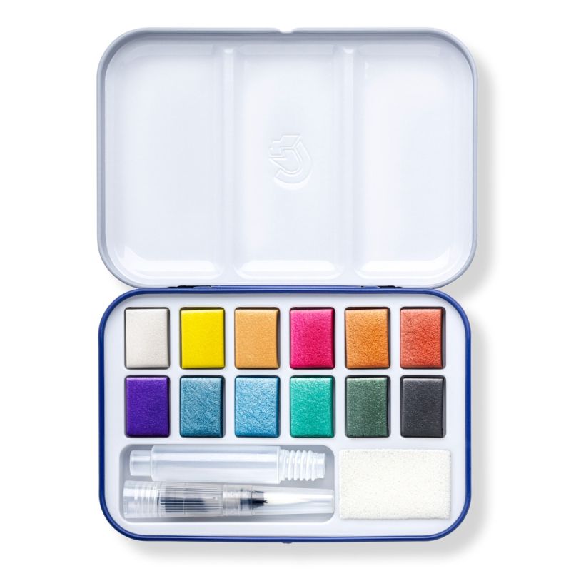 Акварелни бои в 12 цвята за меки, прозрачни нюанси, които могат да бъдат наслоени за по-интензивен ефект