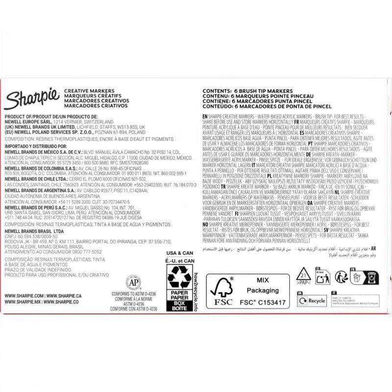 Вдъхнете живот на вашето въображение с акрилните маркери Sharpie Creative. Те създават привличащи вниманието изображения при писане, рисуване и оцветяване! Тези акрилни маркери се отличават с мастило с ефект на боя. Мастилото на водна основа няма да протече, така че работата ви остава чиста. Маркирите са с ярки цветове и с тях могат да се създават атрактивни творби върху повечето светли и тъмни повърхности като хартия, метал, дърво, керамика, стъкло, камък и платно. Цветовете се наслояват красиво, за да добавят измерение към вашата работа. Нещо повече, акрилните маркери Sharpie Creative нямаj нужда от разклащане - просто отворете капачката и започнете да творите! Сканирайте QR кода на опаковката и стартирайте приложение Sharpie A/R (Augmented Reality) за 3D визуализация на употребата на маркерите.