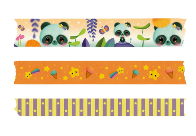 • Комплект от 3 различни цветни лепящи ленти с дължина 3 m• 1 x 2.5 cm ширина• 1 x 2 cm ширина• 1 x 1.5 cm ширина• Предлагат се в дисплей с 2 дизайна по 6 броя