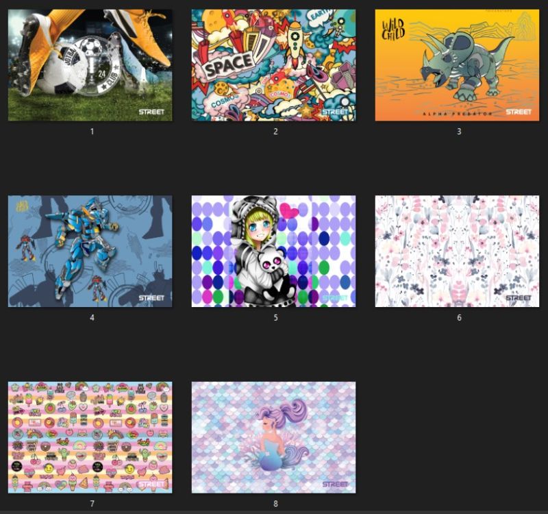148 х 210 mm. Цветни хром хартии - златен бронз, сребърен бронз, червен, оранжев, жълт, зелен, син, кафяв, черен, розов