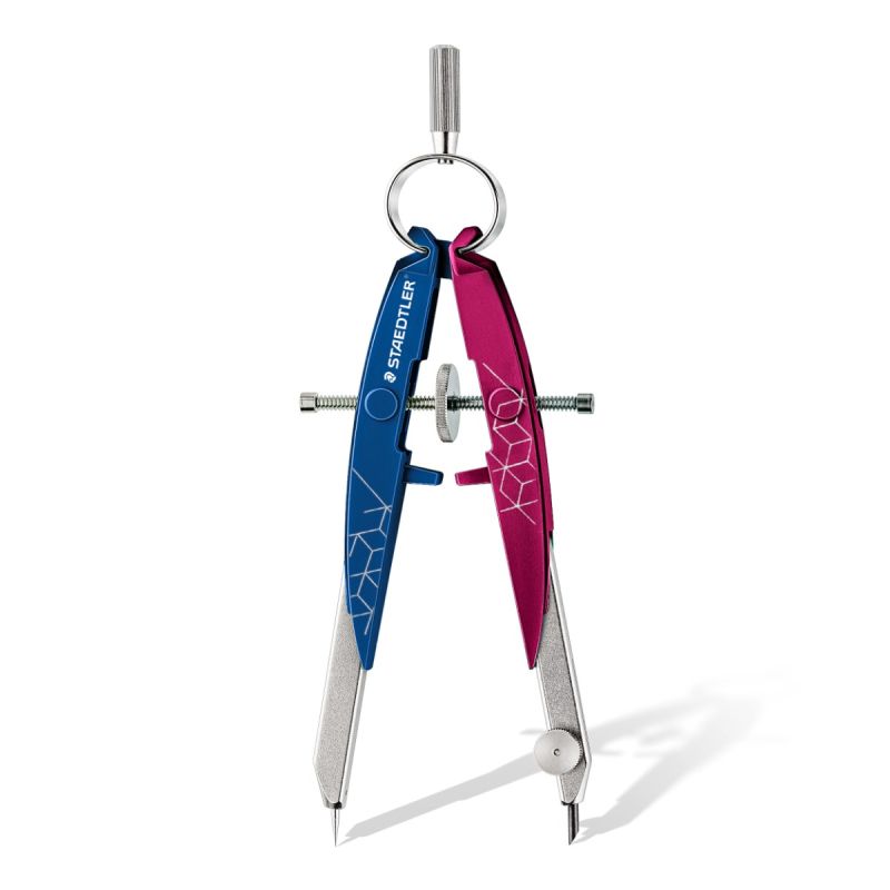 Висококачествен пергел с кръгла глава и централно колело. За окръжности с максимален диаметър 230 mm. Материал: здрава пластмаса и метал. Дължина 154 mm. Атрактивни цветови комбинации от синьо/ залено и синьо/ лилаво.