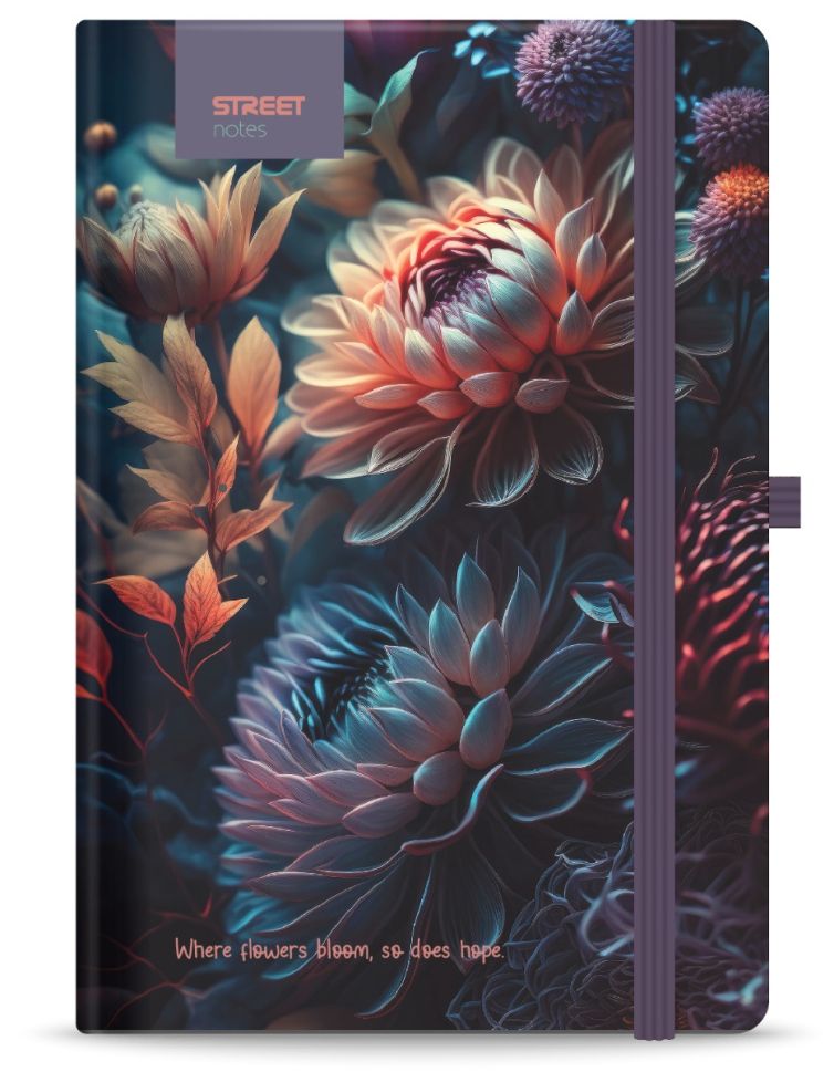 Бележник с ластик B5 Street, твърда корица, 96 листа, BLOSSOM