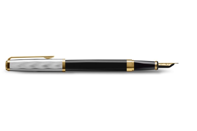 Черното лакирано тяло на Waterman Exception и позлатените части са уловили романтичното настроение на парижкото нощно небе над златния блясък на градските кафенета и уличните светлини, докато изящната капачка с покритие от паладий и шарка на изсечени вълни перфектно улавя духа на вълните на нежно течащата Сена. Перото от 18K злато допълва класическите характеристики на Waterman, като характерния клип и логото „W“. Всяка писалка е щателно ръчно сглобена във Франция, демонстрирайки галското умение на Waterman.