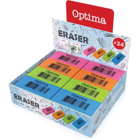 Гума Optima Neo, неонови цветове, дисплей 24 броя
