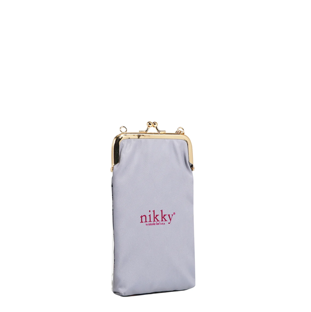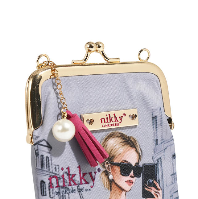 Детайли на продукта: - Изработена от висококачествен найлонов плат. - Основно закопчаване Kiss - lock в златист цвят. - Златиста верижка 6,3 см с перла и пискюл. - Ексклузивна щампа на Nikky отпред. - Златиста табелка с логото на Nikky отпред. - Просторна вътрешност за очила или други важни веи. - Подплатена с щампа на Nikky от найлонов плат. - Включва подвижна златна верижка. - Тегло: 0,3 кг.