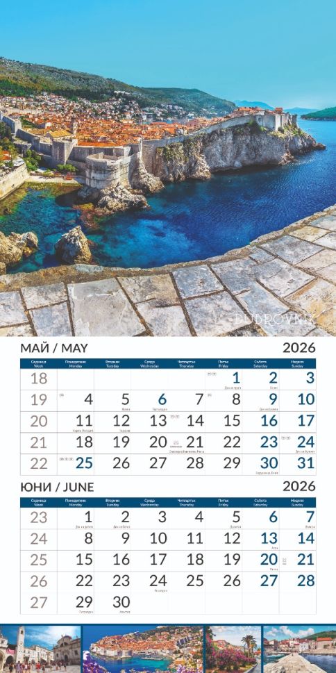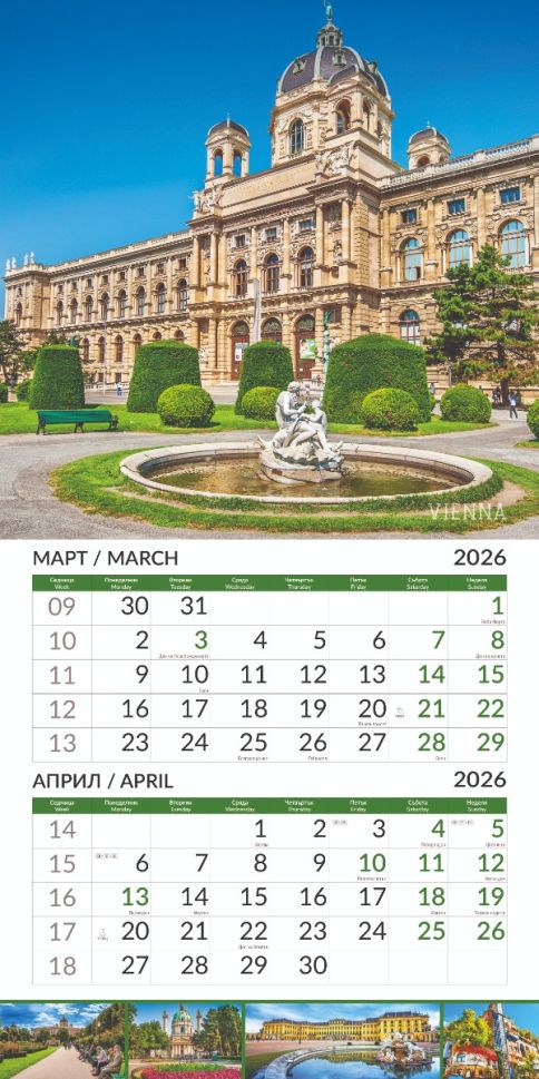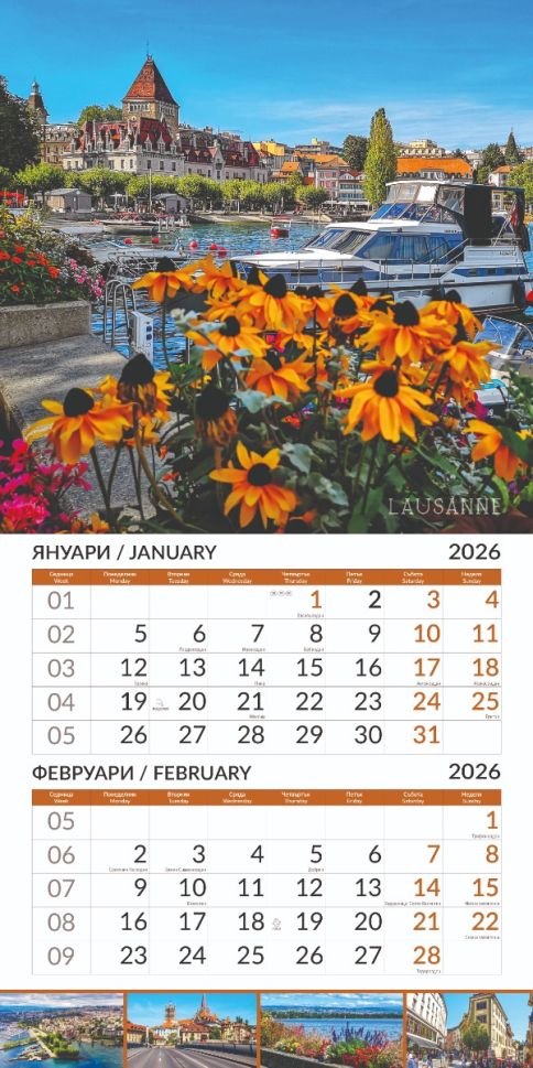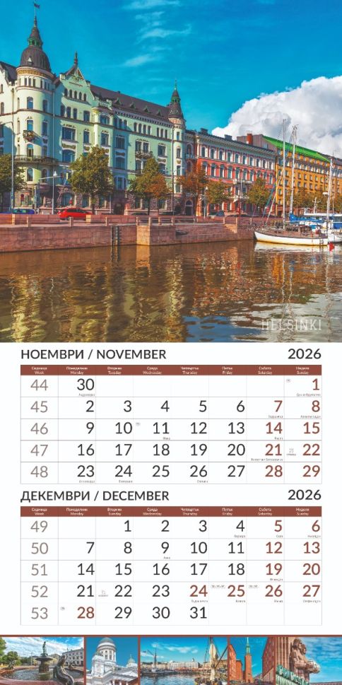 Стенен календар 6-листов, 2026, Europe Cities