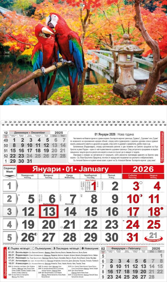 Стенен работен календар КС 11 с цветна глава,1секция, No 7