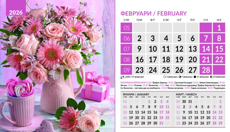 Настолна пирамидка 12-листова, 2026, Bouquets