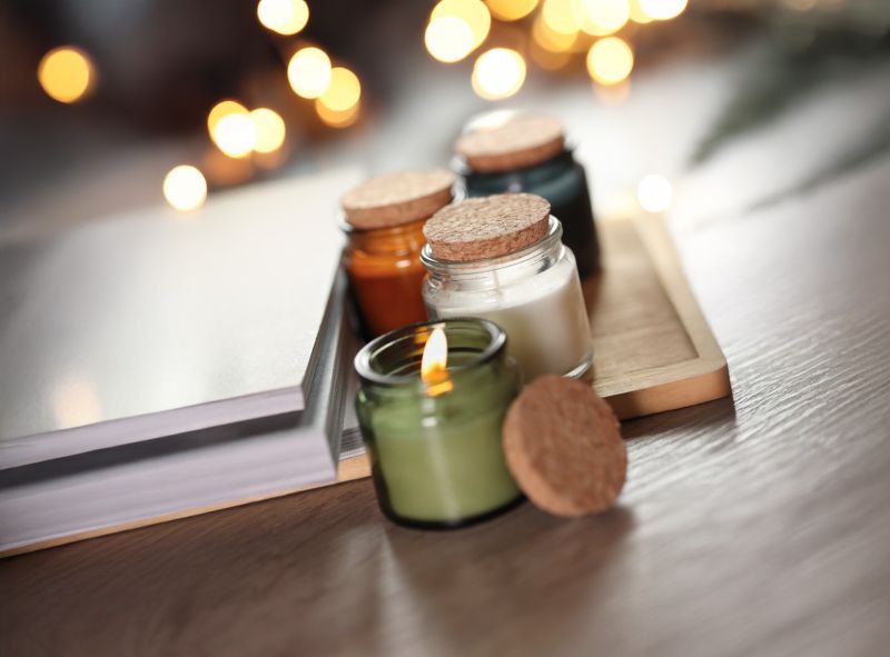 Восъчна свещ в стъклен буркан с корков капак. Аромат ванилия. Време на горене: 12 часа. 70g. 6.2 x 6.2 x 6 cm