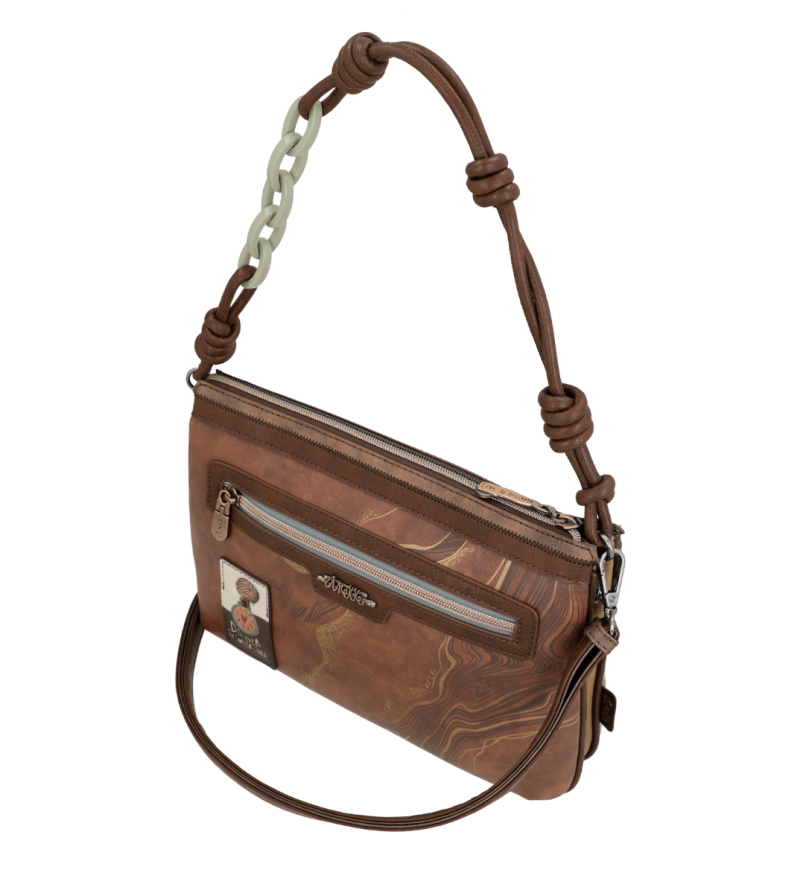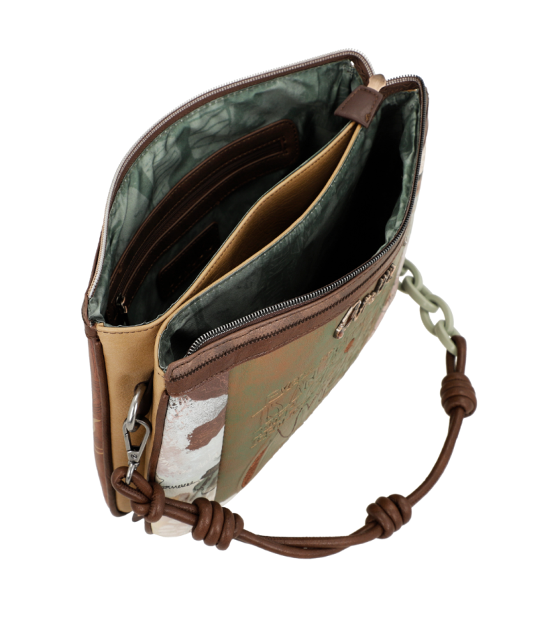 Вид: Висококачествена еко кожа Вид на затваряне: Цип Джобове: 1 основен и 1 заден с цип, 2 без цип за мобилен телефон и ключове Тип дръжка: 1 регулируема дълга дръжка и 1 за рамо Размери: 28 x 21 x 4 см Вътрешен състав: 100% полиестер