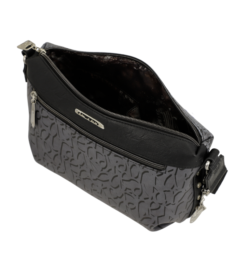 Вид: Висококачествена еко кожа Вид на затваряне: Цип Вид джобове: 1 основен с цип,1 заден с цип, 1 вътршен с цип Тип дръжка: Регулируема дълга дръжка Размери: 31 x 21 x 10 см Вътрешен състав: 100% ПОЛИЕСТЕР Допълнителен аксесоар