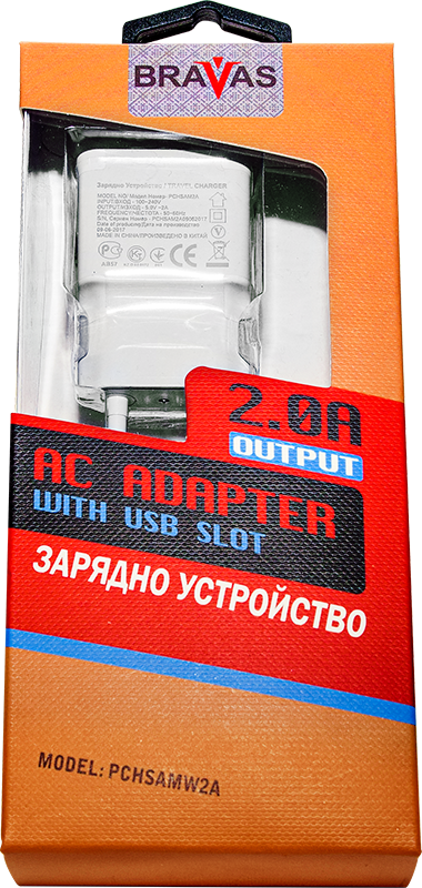 Зарядно устройство BRAVAS USB за стена 5V-2A, сертифицирано