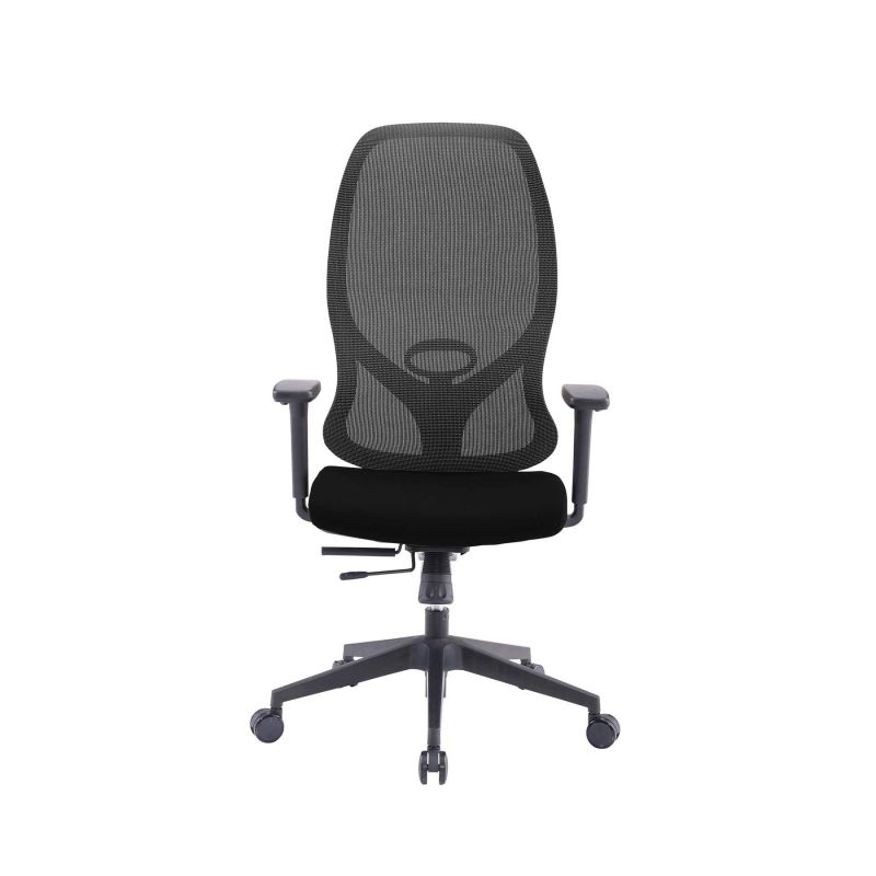 Ергономичен стол RFG STAR HB, дамаска и меш, Synchronous механизъм, до 150 kg, черна седалка, сива облегалка