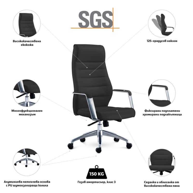 • Столът е изработен от висококачествена екокожа, която го прави перфектен завършек за всеки модерен офис интериор.