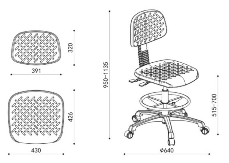 • Седалката и облегалката са изработени от полиуретан, а връзката между тях е статична.