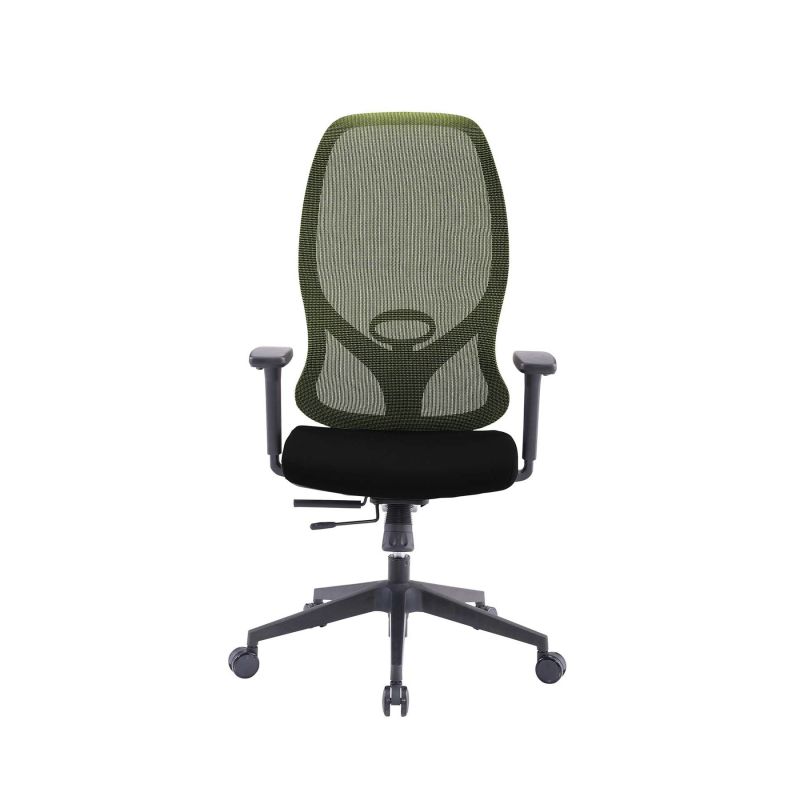 Ергономичен стол RFG STAR HB, дамаска и меш, Synchronous механизъм, до 150 kg, черна седалка, зелена облегалка