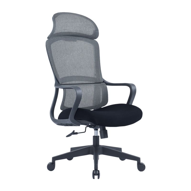 Директорски стол RFG Best HB, дамаска и меш, Tilt механизъм, до 120 kg, черна седалка, сива облегалка