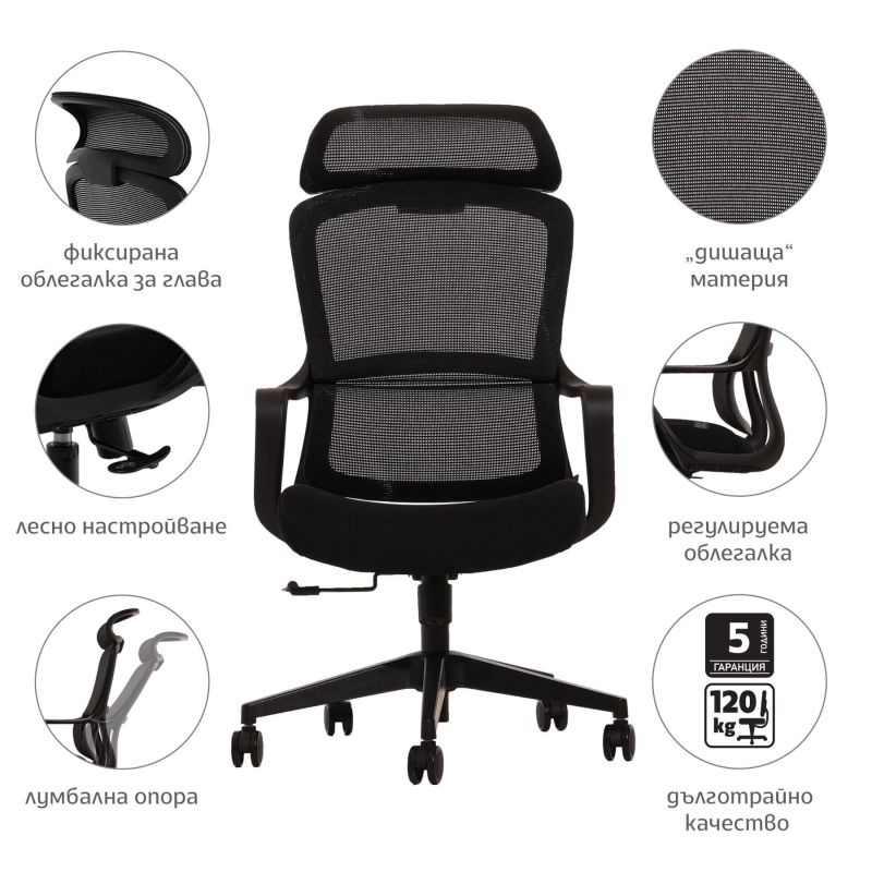 Благодарение на лумбалната опора на облегалката и специалния дизайн за постоянен контакт с кръста, всяка извивка на гърба Ви ще бъде в правилна позиция и това значително ще намали стреса на тялото и умората.