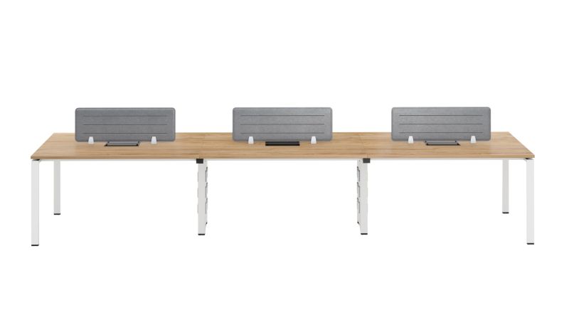 Бюро RFG Бенч Monaco, шестместно, 4200 х 1200 х 750 mm, ПДЧ 25 mm, плот бряст, бели метални крака