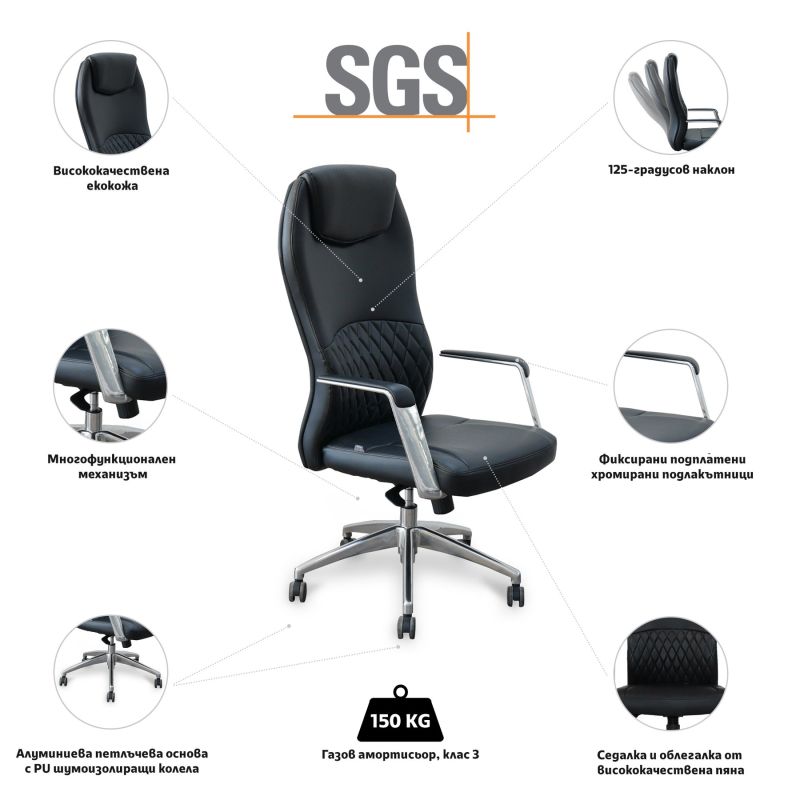 Директорски стол RFG CRONO HB, екокожа, до 150 kg, черен
