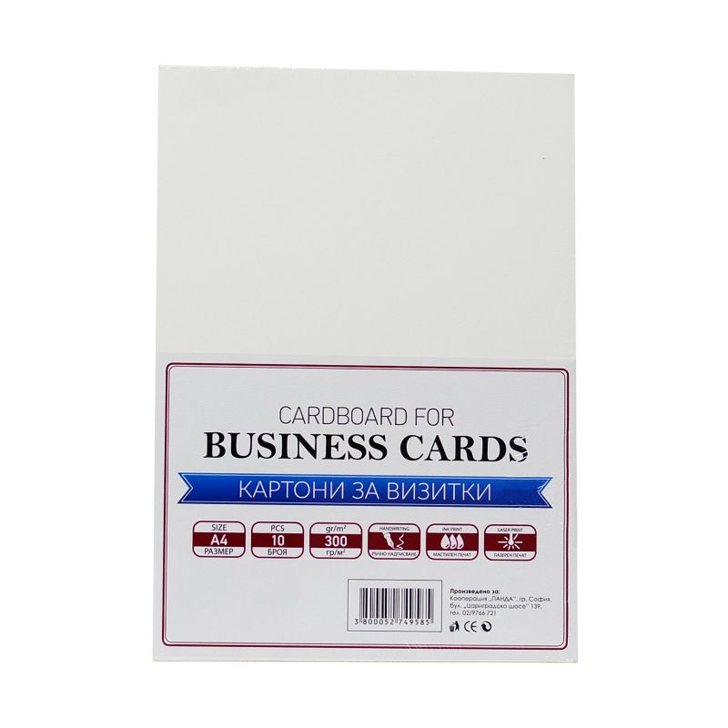 Office 1 Картон, визитен, А4, 300 g/m2, кремав, 10 листа