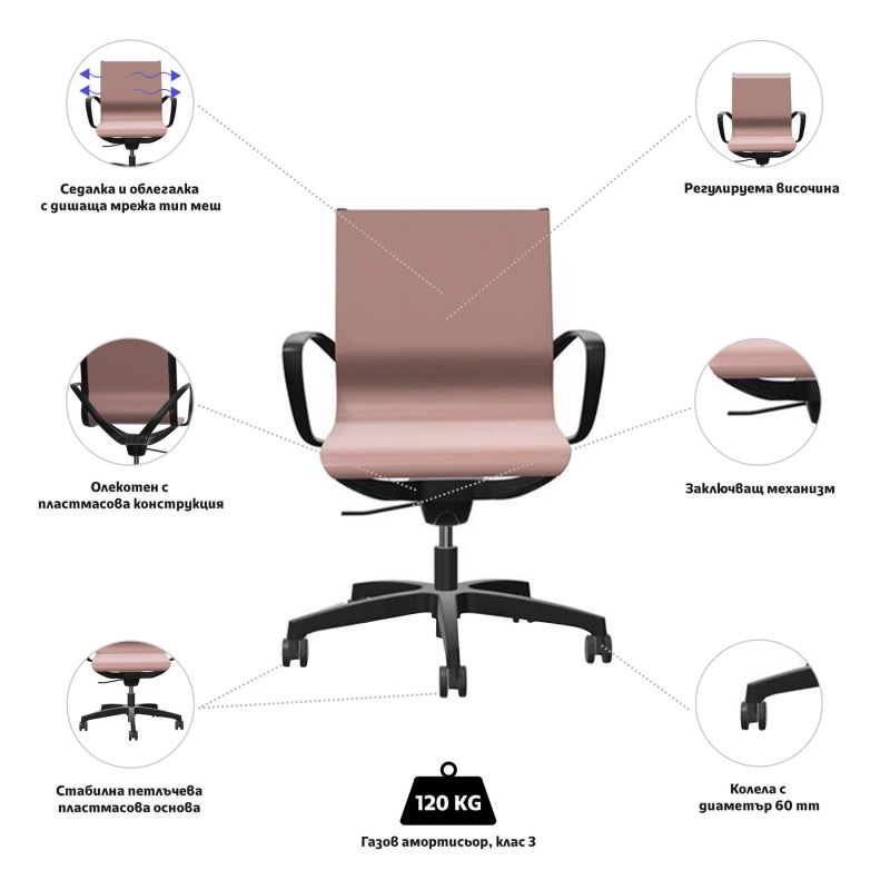 Ергономичен стол Rim Zero ZG 1352, меш, пластмасова основа, розов
