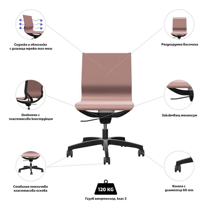 Ергономичен стол Rim Zero ZG 1351 White, меш, пластмасова основа, розов